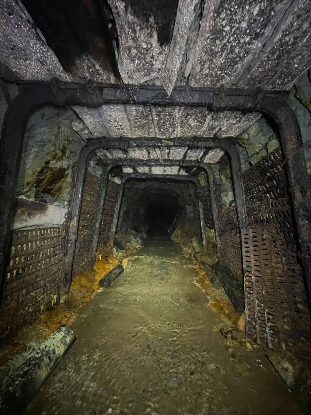 Po návrate z chodby s označením voda sme sa znovu dostali na hlavný prekop, a ostáva nám ešte druhá vetva s označením medveď. Čím hlbšie v chodbe sme, o to viac rastie moja zvedavosť či skutočne uvidíme toho medveďa čo dobrovoľne žije v bani s ľadovou vodou. Bohužiaľ ani toho medveďa sme nikde nenašli, možno bude doma nabudúce, ak teda ešte neemigroval pred sneHuliakom :D. Počas pátracej akcie po medveďovi sa postupne dostávame na ďalšie vetvenie, tentokrát hlavná chodba pokračuje rovno a odpája sa z nej pravá a ľavá vetva. A tu sa zas ozve merač. Tentokrát zaznamenal prudký pokles koncentrácie O2 z 20.6% na 17.6%, takže namiesto medveďa tu začína tá pravá párty. Pri pohľade na stav troch chodieb pred nami nemáme veľmi na výber kam ísť. Rovno pred nami bol zával, za ním dva zabudnuté banské vozíky a za nimi ďalšie závaly. Pravá vetva bola čiastočne zavalená, no aj v nej bolo v diaľke vidno ďalšie závaly. Posledná ľavá vetva na tom bola rovnako. A aj keby sme sa vydali ešte ďalej do jednej z chodieb, hrozilo by nám že koncentrácia O2 pôjde ešte nižšie a zrovna som nemal chuť prekonávať rekord najnižšej nameranej koncentrácie z roku 2023. V tomto bode sme teda ukončili prieskum a vydali sa nazad ku portálu. Ale zážitok ešte nekončí, kdeže. Sranda ešte len začína, lebo v bani jej nebolo dosť. Keďže som si doma zabudol čelovku, svietil som si len reflektorom. Už som sa aj začínal čudovať že ho po takmer dvoch hodinách ešte ani raz nevyplo (aby sa neprehrial), a vtedy to prišlo... Reflektor vyplo, a keď som ho zapol znovu, namiesto svetla som mal akurát tak morzeovku, keďže sa po pár sekundách zas vypol. Čelovka z auta svietila asi tak, že som nevidel ani pod nohy a nie ešte pred seba, a tak ostala núdzová možnosť – svetlo na mobile. Je celkom fuckup že mobil svietil lepšie než tá čelovka. Našťastie som bez riadneho svetlá ostal tak 90m od portálu, a nie kilometer hlboko v bani.
